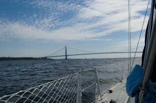 After spending an amazing week in NYC seeing friends and the sights, it is time to return to more traditional cruising. With 9-12’ seas predicted along the New Jersey coast due to Hurricane Helene, we head for the protection of Atlantic Highlands just inside Sandy Hook, NJ. We plan to wait here until the seas are more manageable. Atlantic Highlands is known as a protected anchorage, although wrecked boats in the harbor serve as a sad and chilling reminder of the risks of life at sea. I meet a man removing his personal property from a wrecked Beneteau. According to him, a convergence of weather systems including the effects of Hurricane Ernesto created a freak storm that caused 28 boats to break free of their moorings. All but 3 are total losses. The town itself is a cruiser’s dream… within walking distance of a free dinghy dock are a playground, laundromat, hardware store, automotive store, marine supply, post office and supermarket.  Fish are jumping around the boat every night.  The harbor is filling up with cruising boats from around the world.  We meet a nice couple from   |