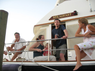 The crew of Steadfast graciously invites us to breakfast and also gives us a real treat... 5 gallons of Buzz's priized watermaker water!